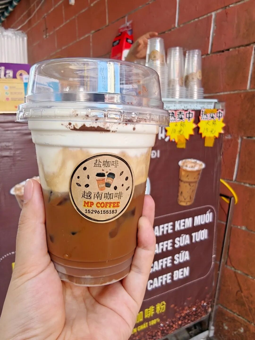 点上一杯招牌的越南滴漏咖啡,看着咖啡液一滴一滴地落下,渐渐浸透进香浓的炼奶中,再均匀拌和,细细品味,那浑厚的口感和共同的香气,瞬间就能遣散旅途的疲乏。